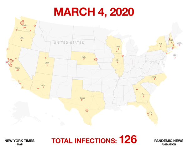 Here’s how the spread is progressing across the nation. Notice that we are now at 40,855 confirmed infections. We were at half that number just two days ago, which tells you something rather horrifying about the speed of the spread of this virus.
