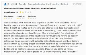 Take a look at just a handful of posted complaints, which are all fairly recent, regarding the nightmarish “side effects” and adverse events going on now, some weeks or months after getting stabbed with billions of toxic spike prions, all just to try to ward off a bad case of the China flu (which none of the inoculations have been proven to do yet).